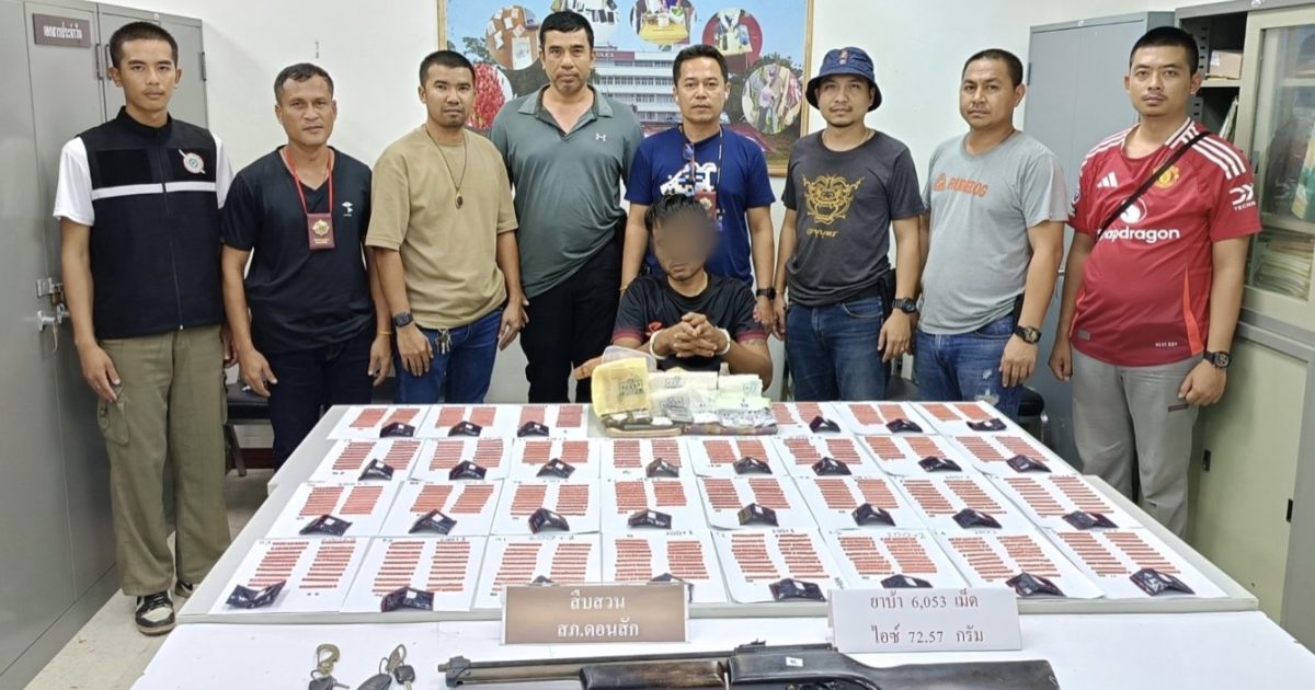 1.ยาเสพติดให้โทษประเภท 1 เมทแอมเฟตามีน (ยาบ้า ) จำนวน 30 ถุง รวมยาบ้า 6,053 เม็ด