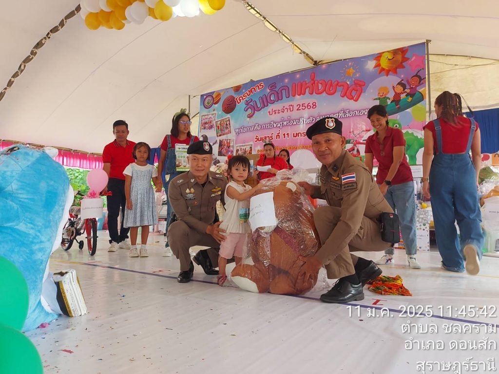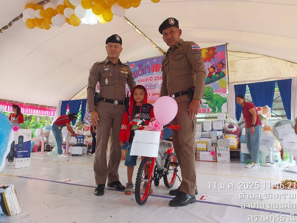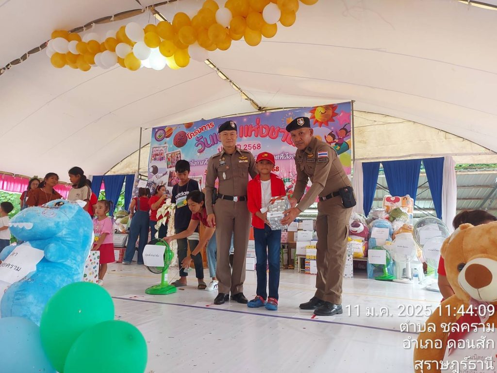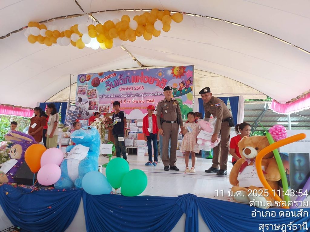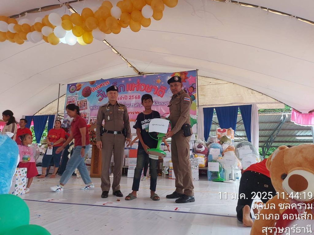 วันที่ 11 มกราคม 2568 สถานีตำรวจภูธรดอนสัก ภายใต้การอำนวยการของ พ.ต.อ.ณัฐชนน เกิดก่อ รอง ผบก.ภ.จว.สุราษฎร์ธานี รักษาราชการแทน ผกก.สภ.ดอนสัก มอบหมาย พ.ต.ท.สัมพันธ์ เกลี้ยงขำ สวป.สภ.ดอนสัก พ.ต.ต.สามารถ แพละออง สวป.(ชส) สภ.ดอนสัก พร้อมกำลัง ร่วมอำนวยความสะดวกการจราจรและรักษาความปลอดภัย บริเวณสถานที่จัดงานวัดเด็ก ประจำปี 2568 ณ สำนักงานเทศบาลเมืองดอนสัก และ สำนักงานองค์การบริหารส่วนตำบลไชยคราม และร่วมแจกของขวัญให้กับเด็กที่เข้าร่วมกิจกรรม
