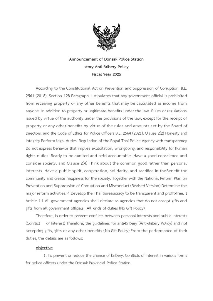 O18 ประกาศนโยบายต่อต้านการรับสินบน ( Anti-Bribery Policy )